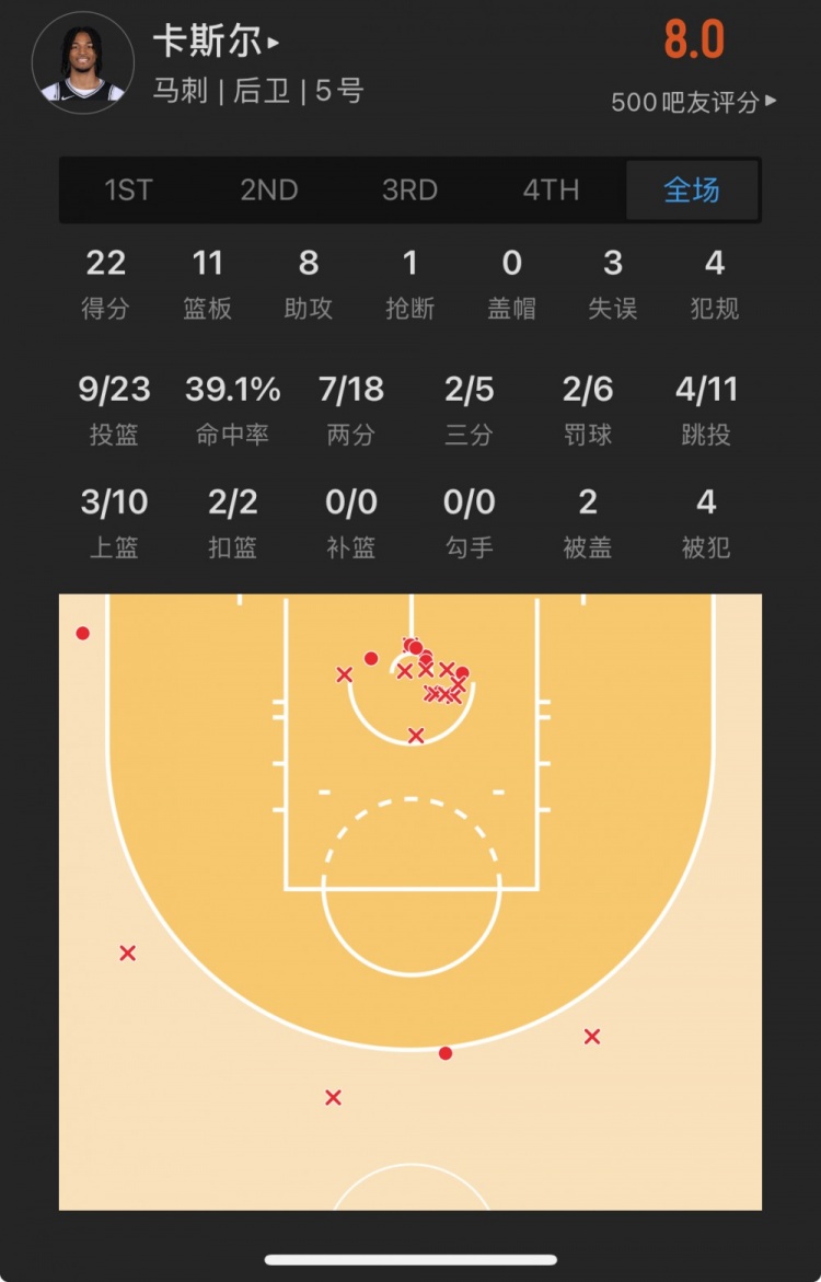 - 菜鳥丨卡斯爾22分11板8助 榜眼薩爾22+7 科利爾12中7貢獻16分6助