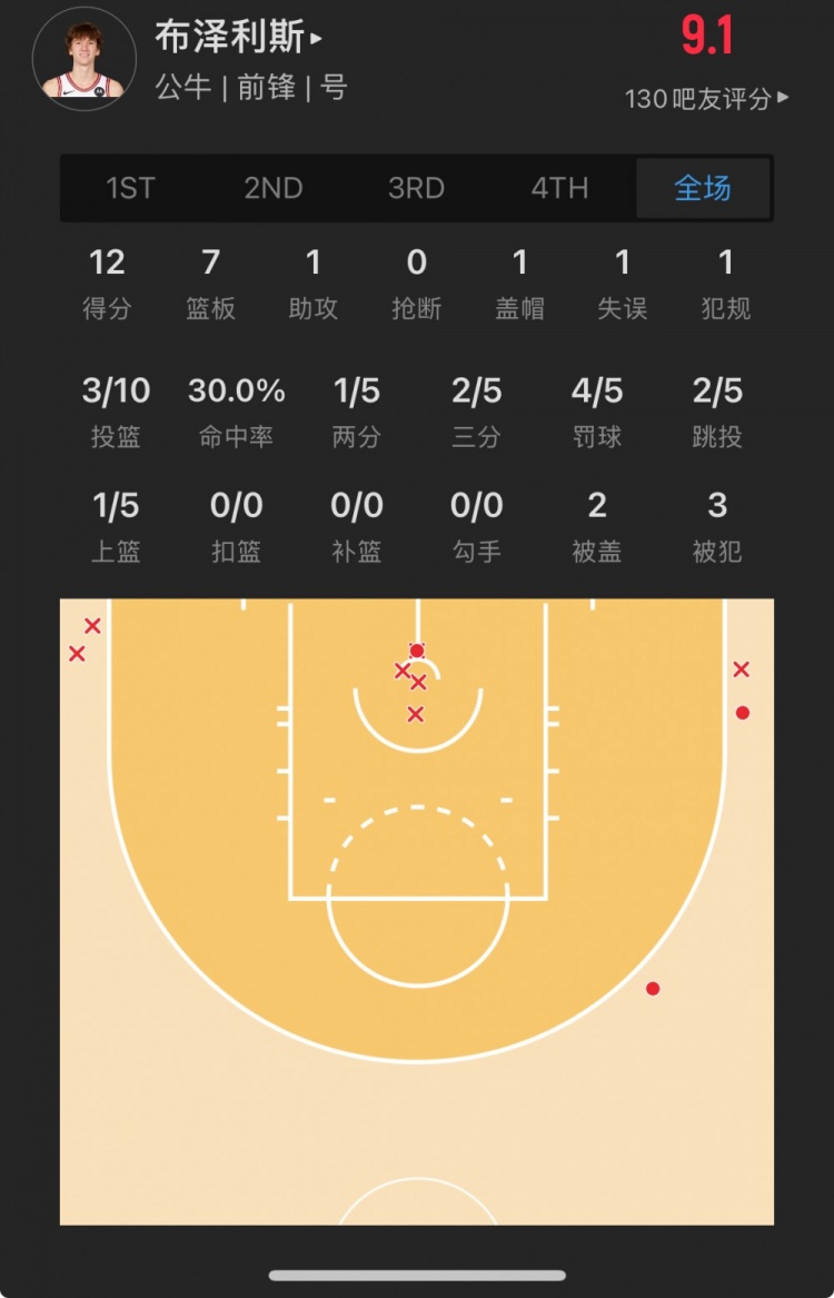 公牛11號秀 馬蒂斯-布澤利斯 登場24.9分鐘