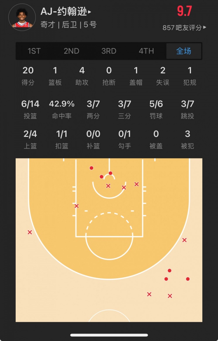 奇才23號秀 AJ-約翰遜 登場42.3分鐘