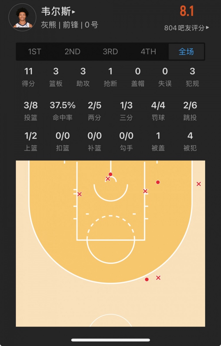 灰熊39號秀 杰倫-韋爾斯 登場23.6分鐘
