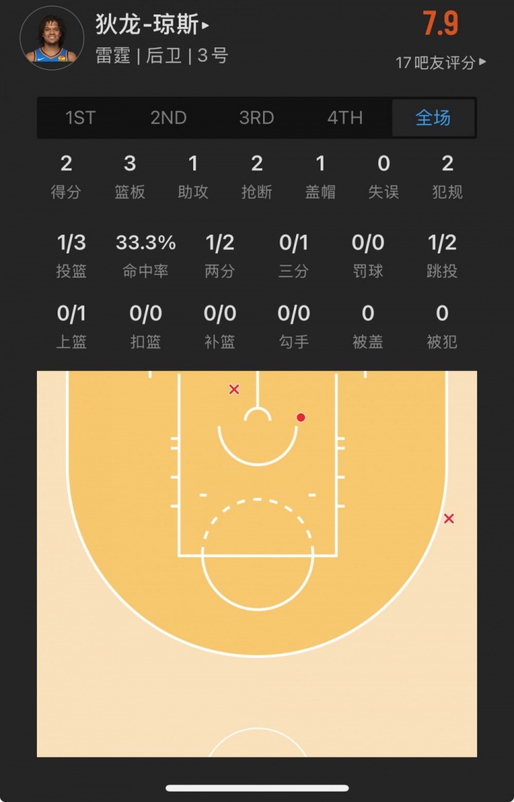 雷霆26號秀 狄龍-瓊斯 登場12.9分鐘