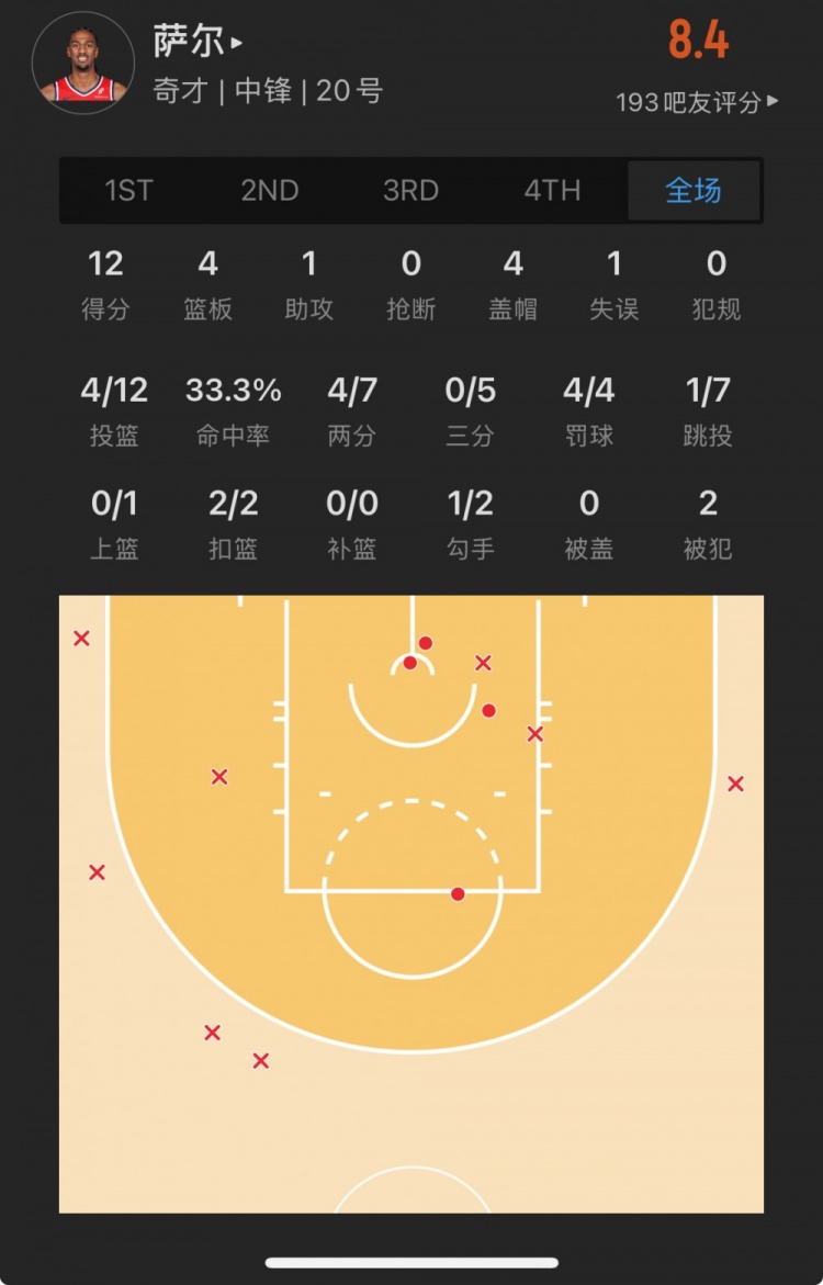 奇才榜眼秀 亞歷克斯-薩爾 登場24.7分鐘