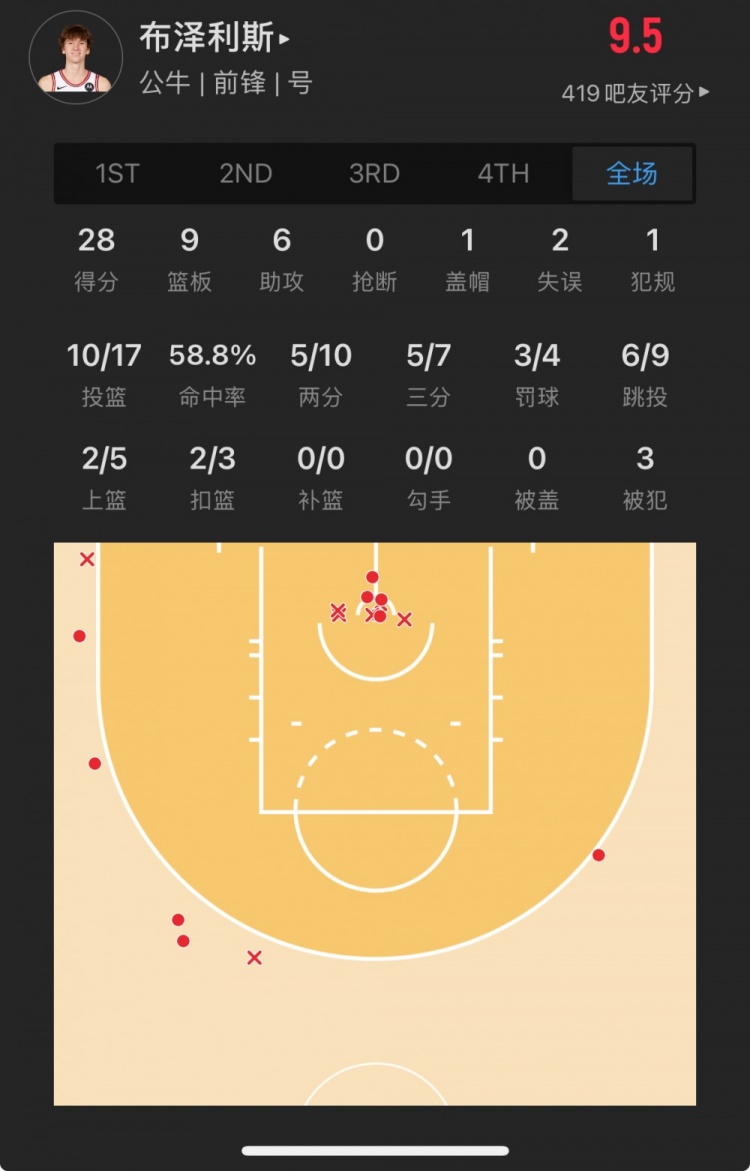 公牛11號秀 馬蒂斯-布澤利斯 登場37.6分鐘