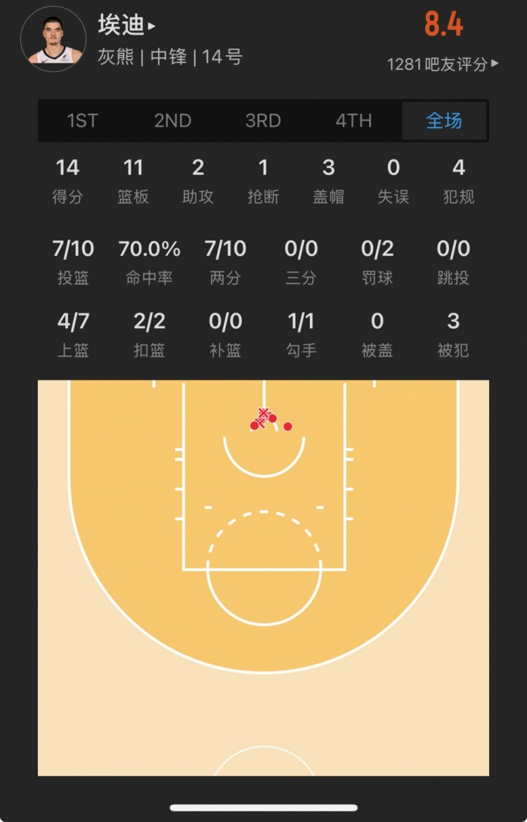 灰熊9號秀 扎克-埃迪 登場26.5分鐘