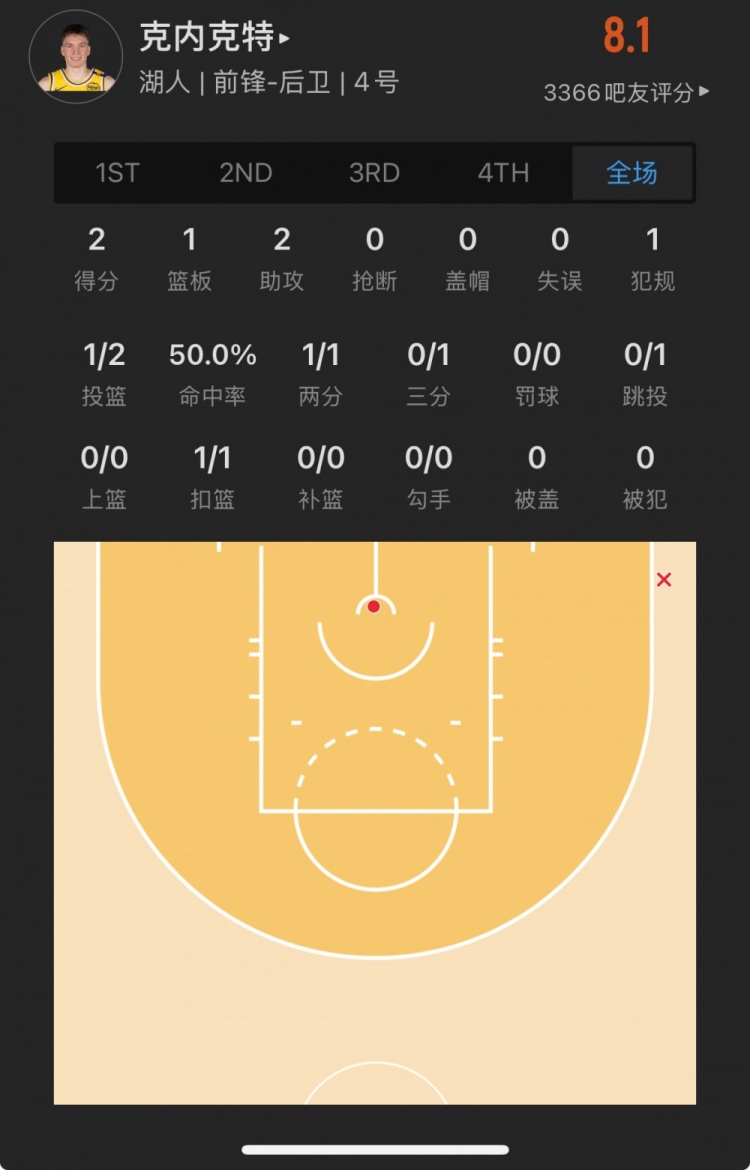 湖人17號秀 道爾頓-克內(nèi)克特 登場5.4分鐘