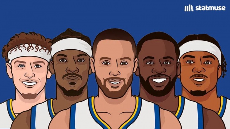 據(jù)統(tǒng)計,勇士當(dāng)派出庫里、波杰姆斯基、穆迪、巴特勒、追夢的首發(fā)陣容時,戰(zhàn)績11勝0負。