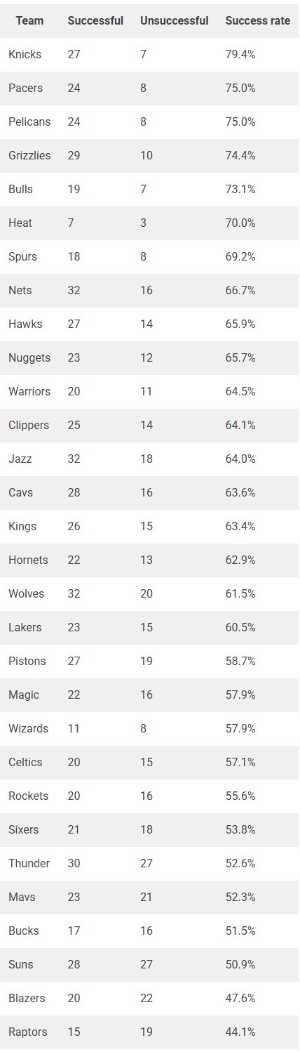 揭秘|教練挑戰(zhàn)有看起來那么簡單?錫伯杜成功率最高&斯波次數(shù)最少