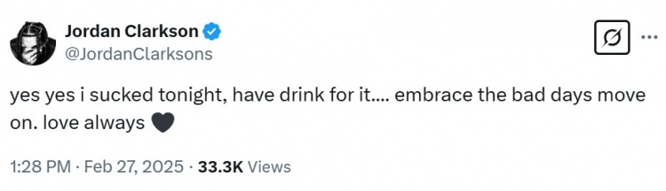 14中1!克拉克森:我今晚太爛了 要擁抱糟糕的歲月 繼續(xù)前進(jìn)