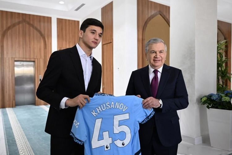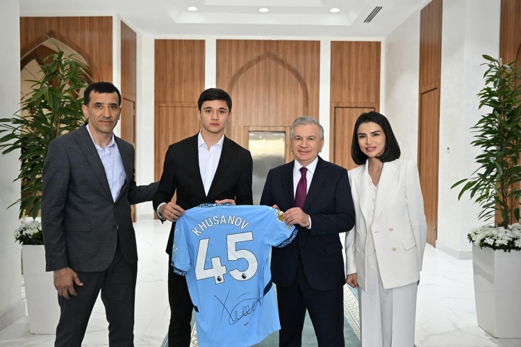 在會見中,胡桑諾夫向米爾濟約耶夫贈送了自己在曼城的45號簽名球衣。