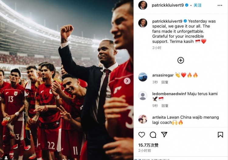 今日克魯伊維特更新社媒,曬出了全隊(duì)圍在一起慶祝勝利的照片,并配文寫(xiě)道:“昨天是特別的一天,我們?cè)趫?chǎng)上傾盡所有,球迷們的加油助威讓這晚更加難忘。謝謝你們令人振奮的支持,感謝(印尼語(yǔ))?!?/p>