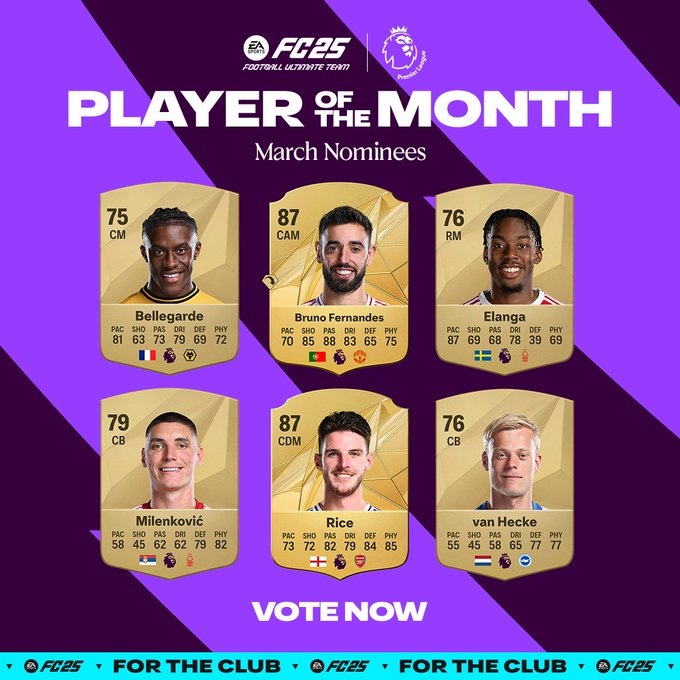 - 英超3月最佳球員候選:B費2場2球2助、賴斯2場1球領(lǐng)銜