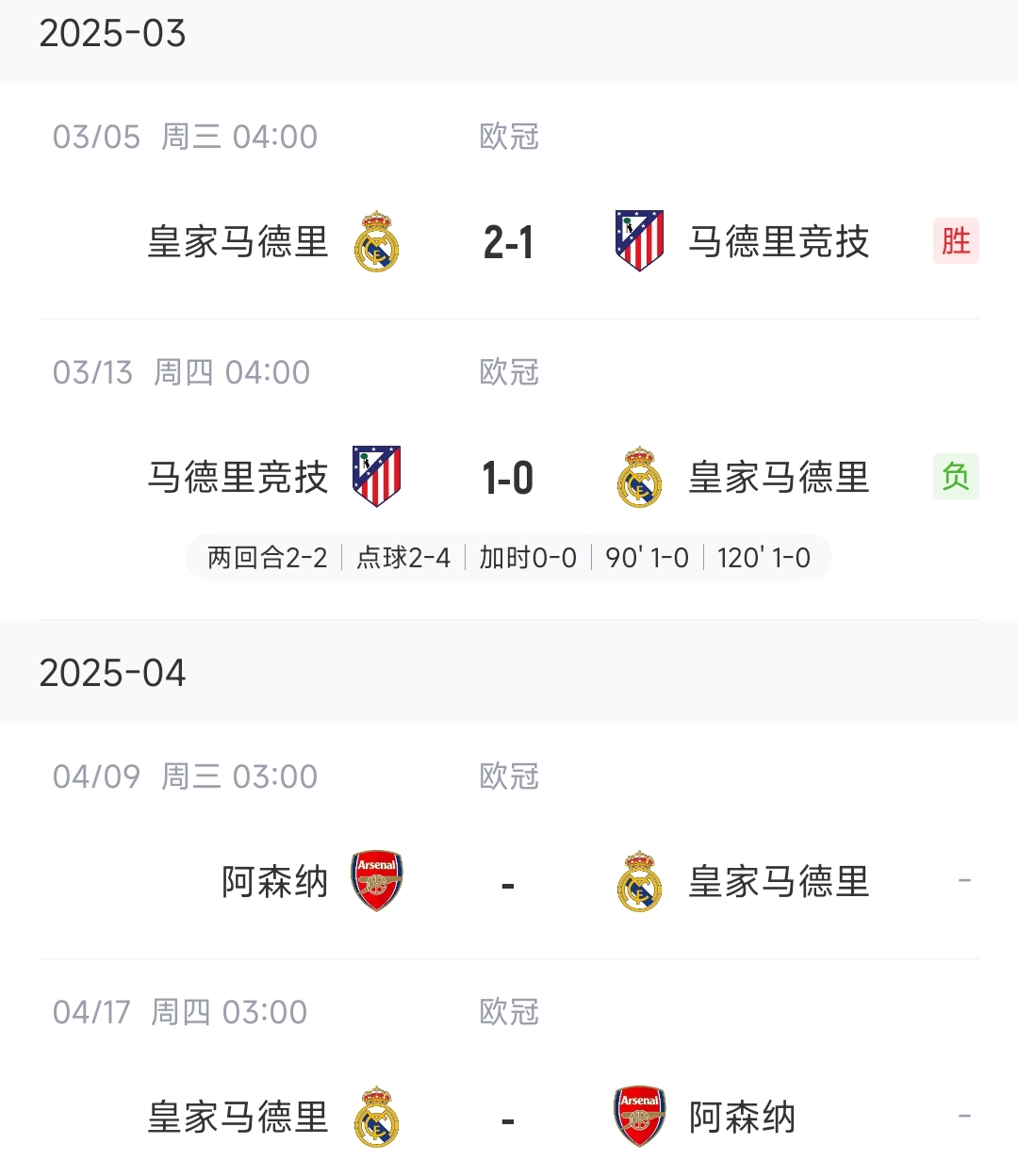 接下來的歐冠1/4決賽中,皇馬將先客后主迎戰(zhàn)英超球隊阿森納,這也是兩隊自2005/06賽季的歐冠1/8決賽后首次交手。