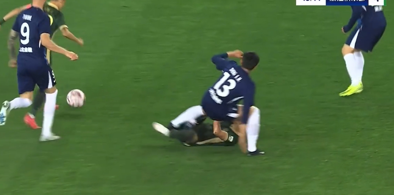 03月28日訊 中超第3輪,武漢三鎮(zhèn)vs浙江。比賽第47分鐘,鄭凱木從身后別倒王鈺棟,同時在王鈺棟倒地后,鄭凱木落地正好踩中王鈺棟腳踝,王鈺棟痛苦倒地。