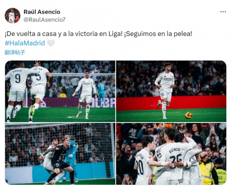 - 勞爾-阿森西奧社媒:回到主場(chǎng)并在聯(lián)賽中取勝,我們?nèi)栽趹?zhàn)斗!