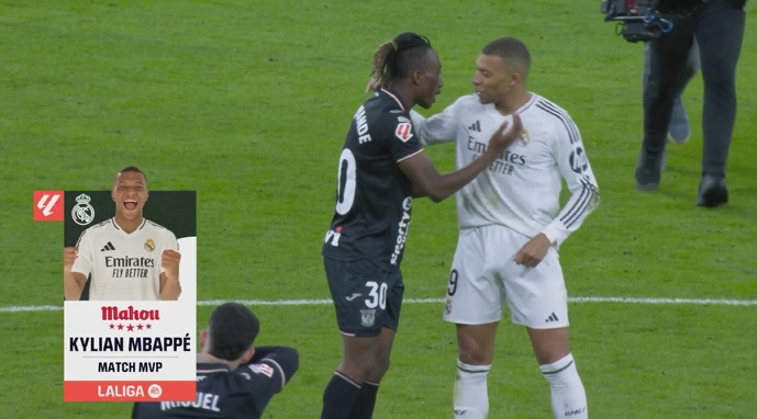 3月30日訊 西甲第29輪比賽,姆巴佩梅開二度,幫助皇馬主場3-2擊敗萊加內(nèi)斯,他當(dāng)選本場比賽最佳球員。