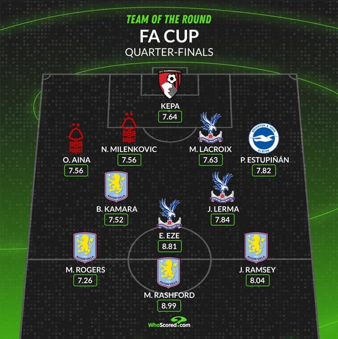 whoscored本輪足總杯最佳陣:拉什福德領(lǐng)銜維拉4將 埃澤&凱帕在列
