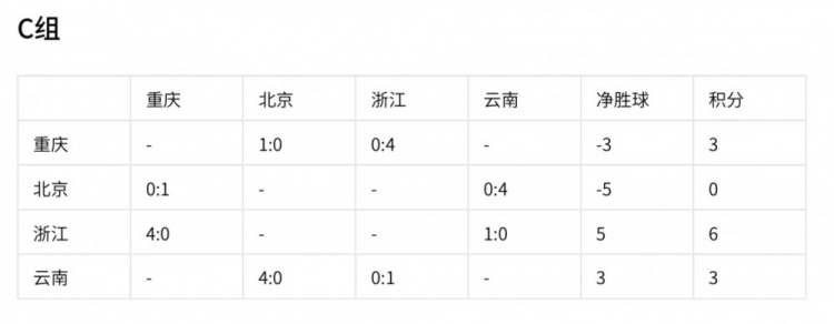 浙江隊(duì)已憑借6分和5個(gè)凈勝球提前出線(xiàn)。重慶和云南同積3分,重慶凈勝球?yàn)?-3,云南凈勝球?yàn)?,北京積0分已無(wú)緣出線(xiàn)。最后一輪重慶與云南的直接對(duì)話(huà)成為焦點(diǎn),根據(jù)規(guī)則,誰(shuí)獲勝誰(shuí)將獲得小組第二出線(xiàn);若雙方打平,雙方各積4分,云南將因凈勝球優(yōu)勢(shì)獲得小組第二,重慶則積4分獲小組第三。浙江與北京的比賽勝負(fù)對(duì)大局無(wú)影響。