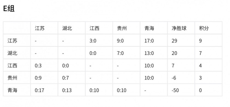 湖北負(fù)江蘇、江西勝貴州將導(dǎo)致湖北與江西同積7分,但由于湖北領(lǐng)先江西13個(gè)凈勝球,因此湖北排名小組第二、江西排名小組第三的概率更大。