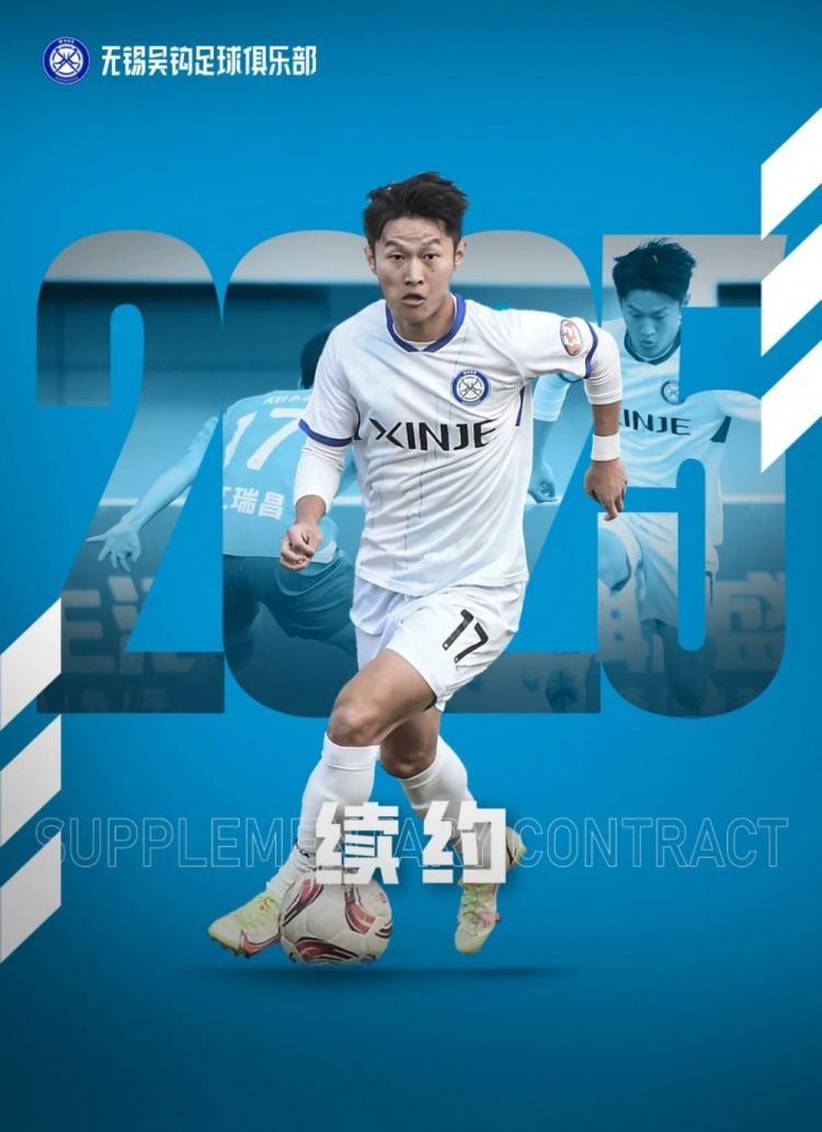 我們在此鄭重宣布,經雙方協(xié)商一致,無錫吳鉤足球俱樂部與球員胡升嘉完成續(xù)約。2025賽季,他將繼續(xù)為無錫而戰(zhàn)!