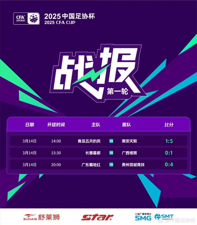 3月14日訊 2025年中國足協(xié)杯今日迎來第一輪的第一個比賽日,來自中乙的三支球隊泰安天貺、廣西恒宸和貴州筑城競技率先晉級。